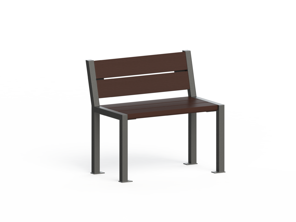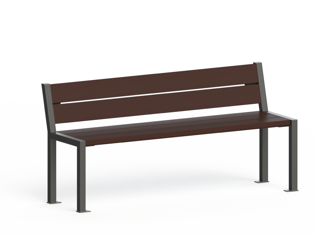 • Le banc: Assise et dossier composés de 10 lames long 700 x larg 110 x ép 35 mm en bois Robinier naturel, Pin traité classe IV, Exotique PEFC huilé ou long 700 x larg 120 x ép 45 mm en plastique recyclé.