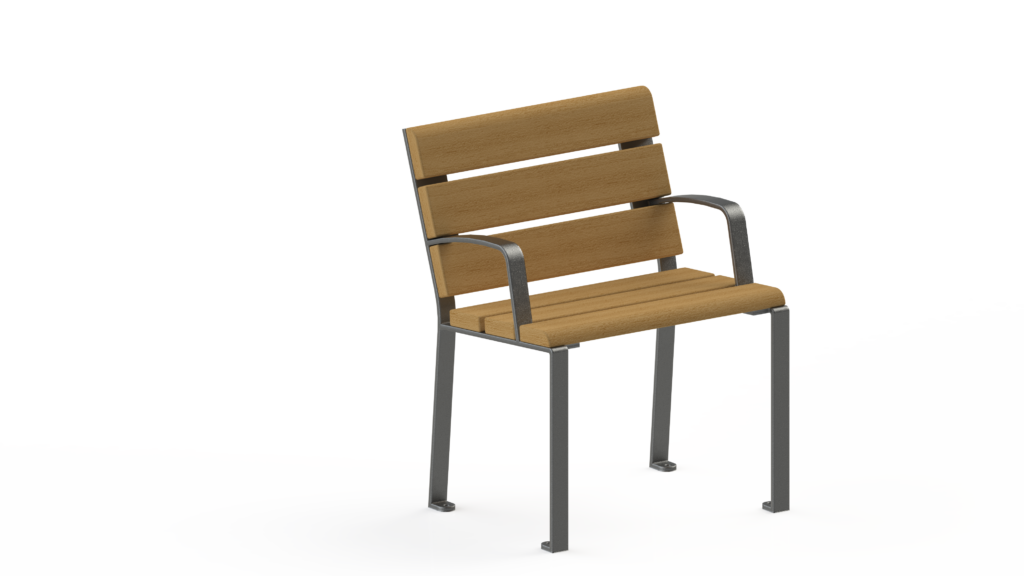 • 6 lames d’assises et 3 lames de dossier en profil tubulaire 60 x 30 mm, soudées sur l’ossature.