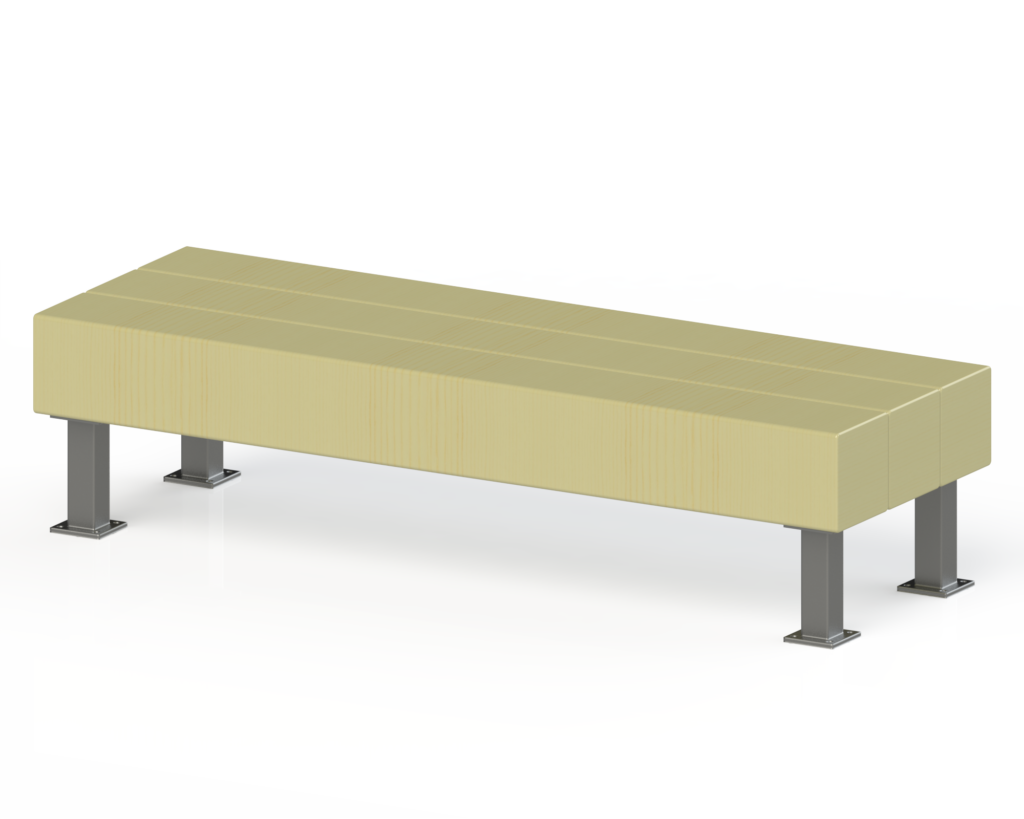 • Assise composée de 6 lames en Pin traité classe IV ou Sapelli de 2000 x 95 x épaisseur 68 mm et dossier composé d’une lame de 2000 x 145 x épaisseur 35 mm en bois.