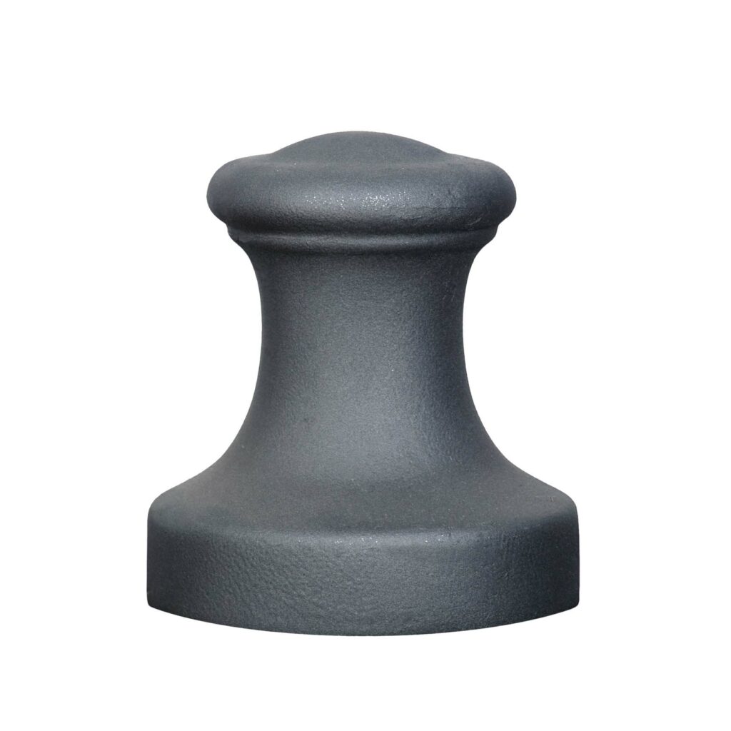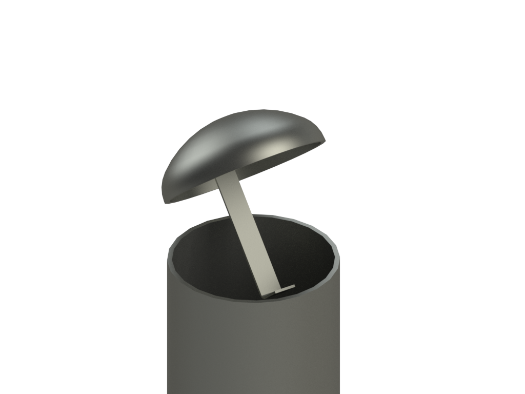 - Tête légèrement bombée en acier, avec angle arrondi, soudée au corps de la borne. Soudure meulée et poncée.