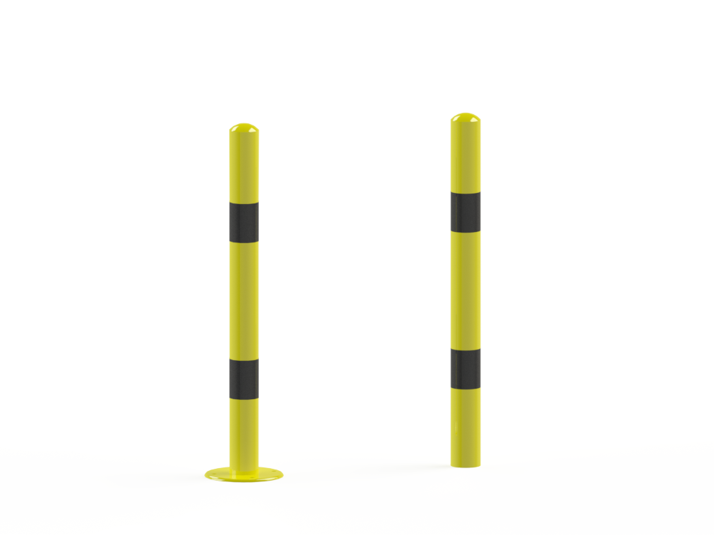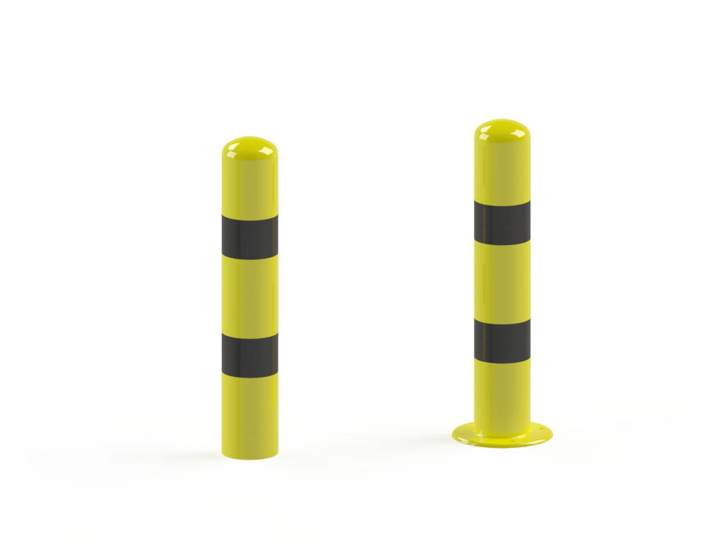 angle arrondi, soudée au corps de la borne. Soudure meulée et poncée. - Jaune RAL 1023 / bandes adhésives noires.